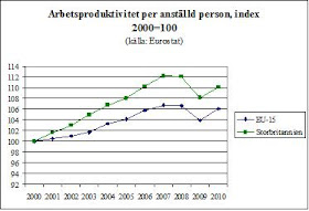 Arbetsproduktiviteten har ökat i Storbritannien sen 2000, snabbare än EU-15:s snitt.
